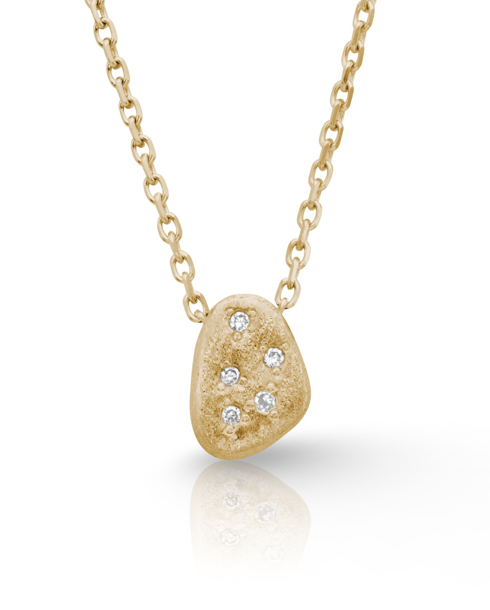 Az Auróra brill medál kézzel formált, matt arany felülettel és öt Top Wesselton VVS briliánssal készült.